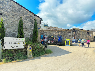Comienza la subida de inmediato por las rúas Arrabaldo y Escalinata Maior hasta alcanzar la principal rúa Maior, todas ellas con múltiples albergues y actividades secundarias dedicadas a los peregrinos.